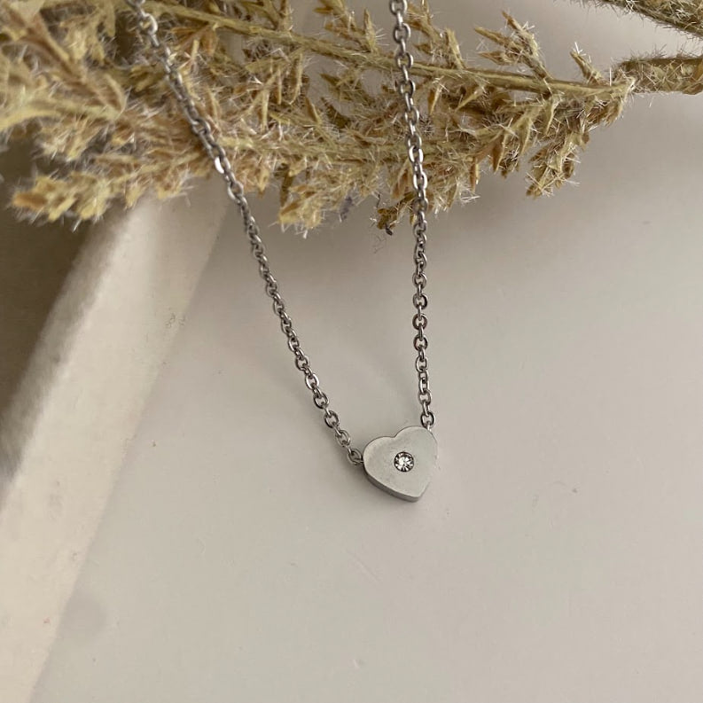Silver Zircona Heart Necklace